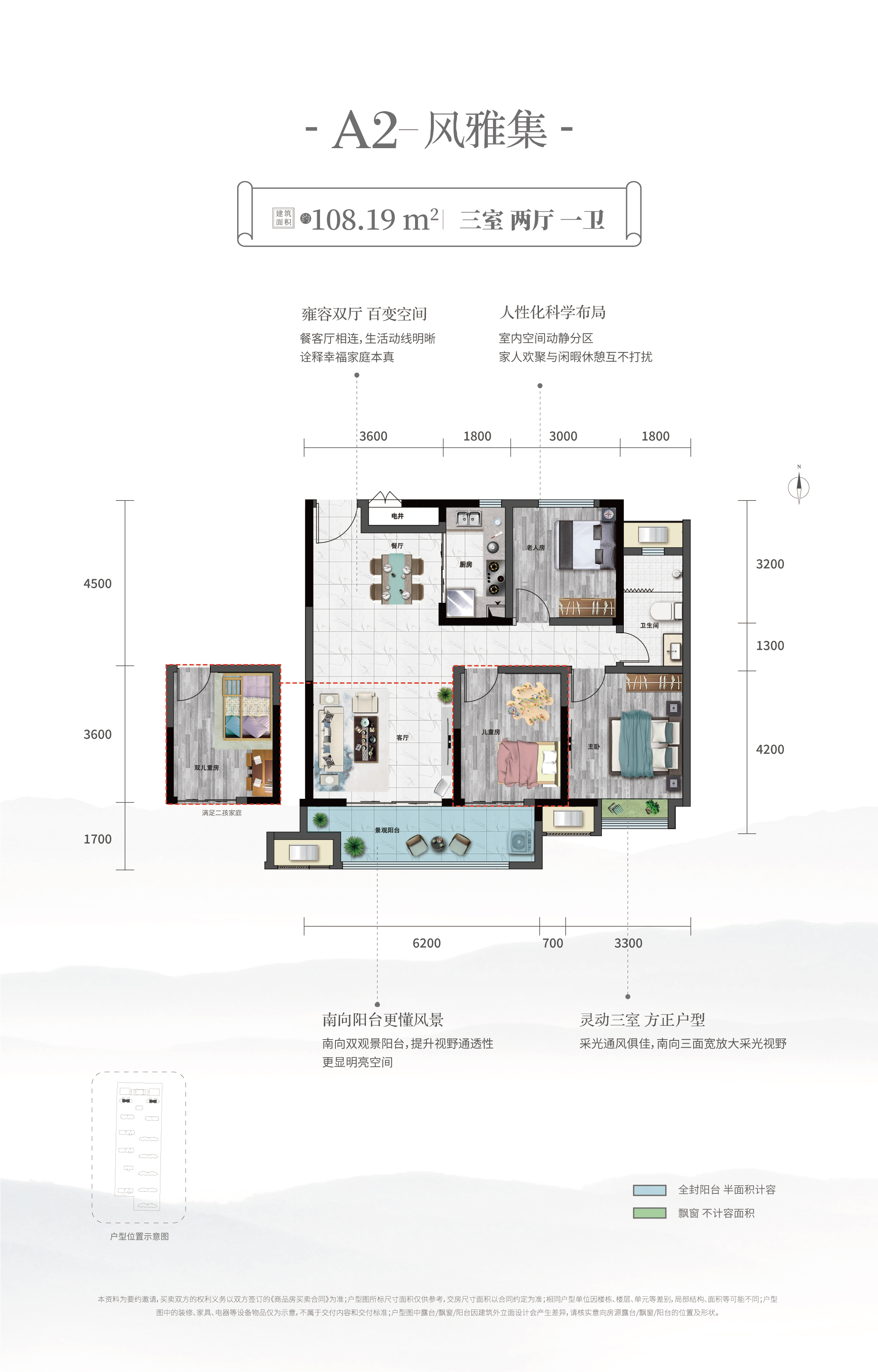 在售 户型方正 客厅朝南 主卧朝南 带衣帽间 主卧带卫 飘窗 双阳台