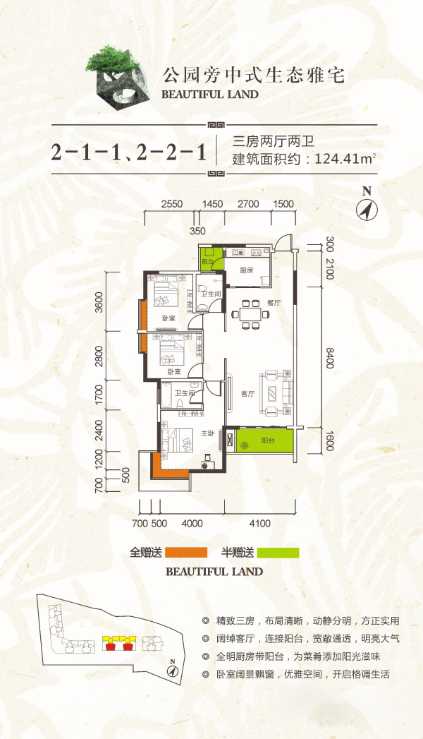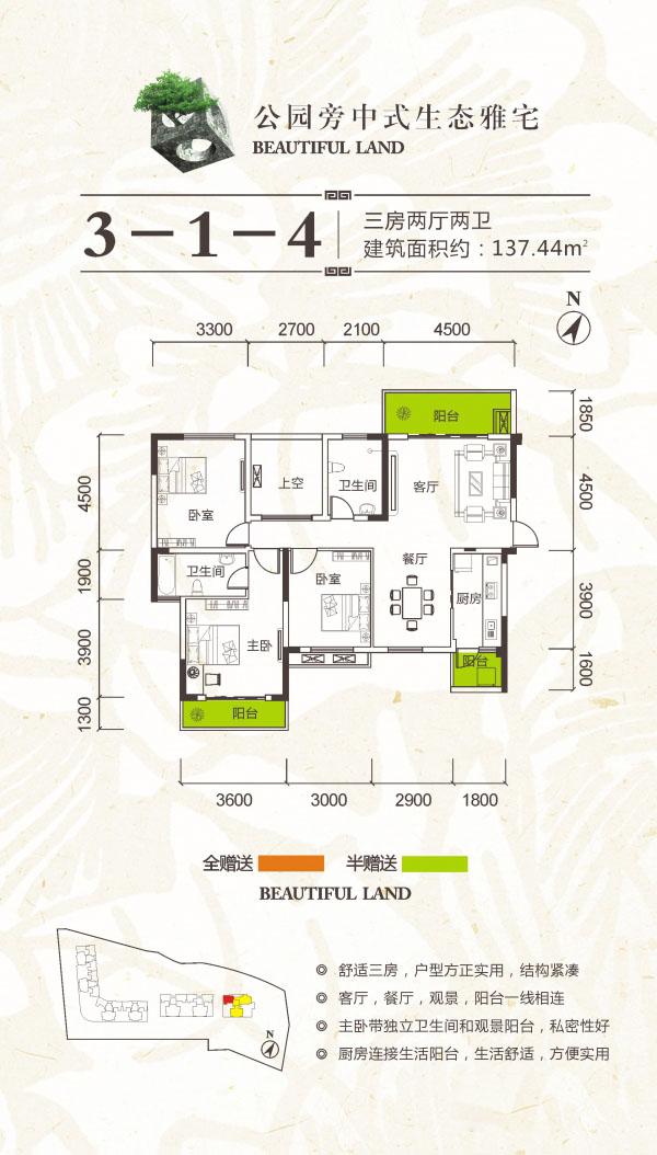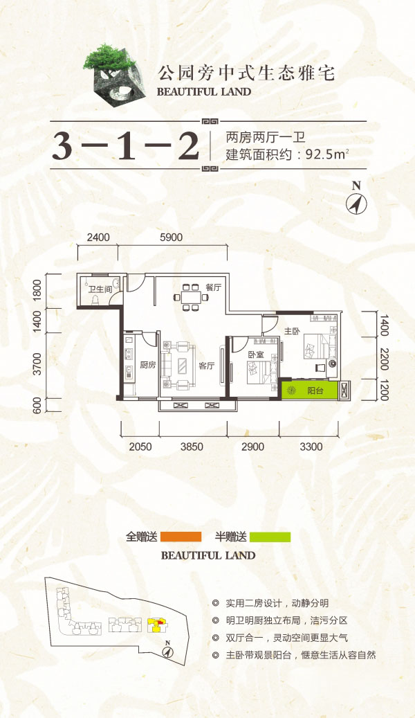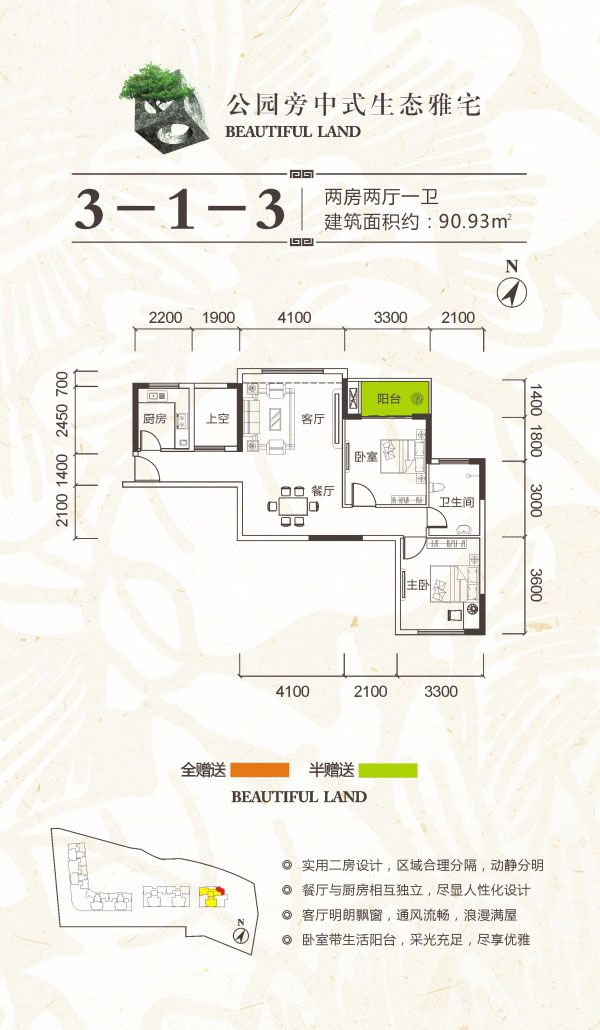 优山美地推出户型为90㎡-137㎡的两房和三房,户型方正实用,功能格局设计巧妙,满足你对生活的追求。