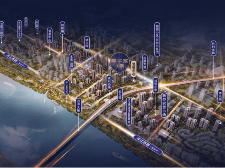 ·沿柳江向北溯源,双冲桥畔,沿江一字排开的滨江西延长线板块,1座繁华大城鼎立而起。“城有水则秀,居有水则灵”,近2公里的滨江景观带,诗意江景生活,满足你对品质生活的向往。
