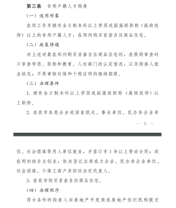 同时,对于在郑工作并拥有全日制本科以上学历或副高级职称(高级技师)以上的非郑户籍人才,在郑州购买首套自住商品房,《办法》规定,在限购审查时只审查学历、职称和教育、人社部门的认定情况,以及购房人就业状况,不再审核社保和个税证明的缴纳期限。