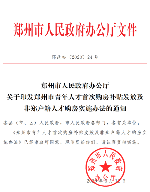 近日,郑州市人民政府印发了《郑州市青年人才首次购房补贴发放及非郑户籍人才购房实施办法》(以下简称“《办法》”),披露了对郑州市青年人才首次购房的补贴,并规定非郑户籍人才购房时,仅审查学历、职称和教育等状况,不再审核社保和个税证明的缴纳期限。