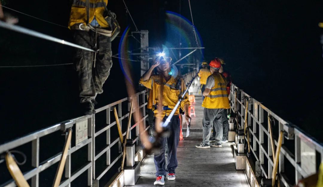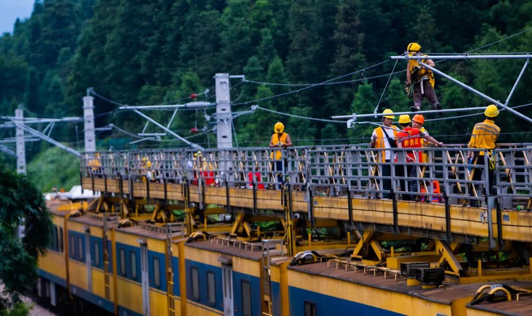 7月27日下午,60多名接触网工,同时对区间内的接触网设备进行全面检查验收,标志着焦柳铁路电气化改造进入接触网平推验收阶段,为期3年的焦柳铁路电气化改造工程即将完成!