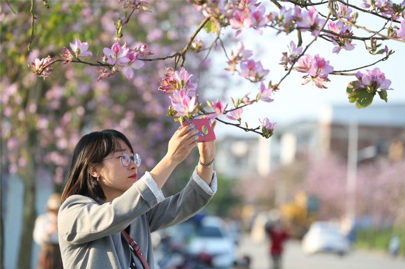 不少市民表示,“走到街上感觉都是在花丛中,现在我们这边紫荆花就相当于日本的樱花一样,不用走到别的地方去看了,蛮幸福的。”
