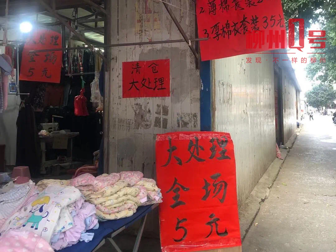 11月19日上午,记者来到位于柳江区北大街东的新城临时过渡市场。走进市场便看到用铁皮搭建起来的棚子,14个棚子在马路中间,有数百米长,现场人来人往,叫卖声此起彼伏,不少卖衣服的商户已经开始清仓大甩卖了。