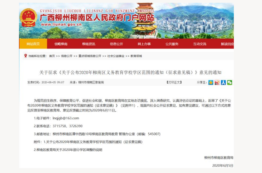 6月5日,柳州市柳南区教育局发布了2020年柳南区义务教育学区范围(征求意见稿),快看看调整后自己的孩子该在哪里读书?