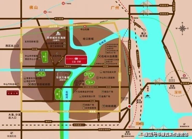 交通便捷: 项目地处中山市一环中心,通达各城镇区,未来可快速连接深中通道,形成1小时粤港澳大湾区生活圈。