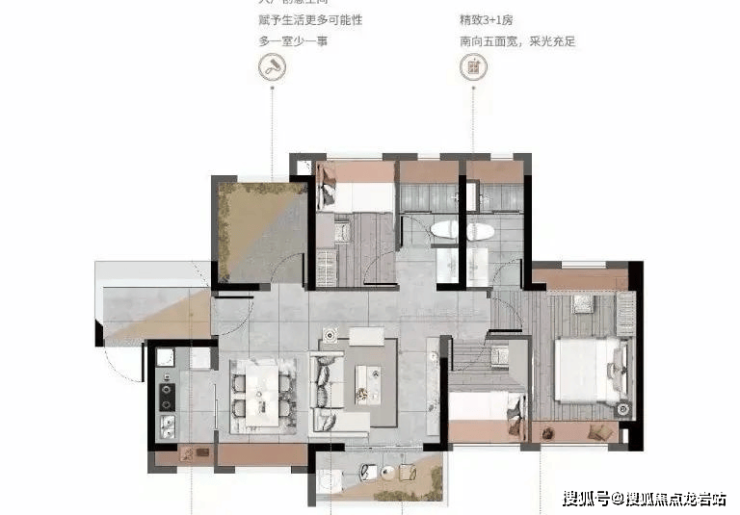 这里规划建设了19栋洋房,包括6栋高达33-34层的高层洋房和13栋18层的小高层洋房。楼座布局巧妙,呈北高南低之势,充分利用地块采光和风向走势,确保每栋住宅都能享受到充足的阳光和舒适的通风。通过前后楼座之间的错落布局和高层洋房楼座的角度偏斜,所有住宅产品都实现了南向采光或南北通透,为居民带来了极佳的居住体验。