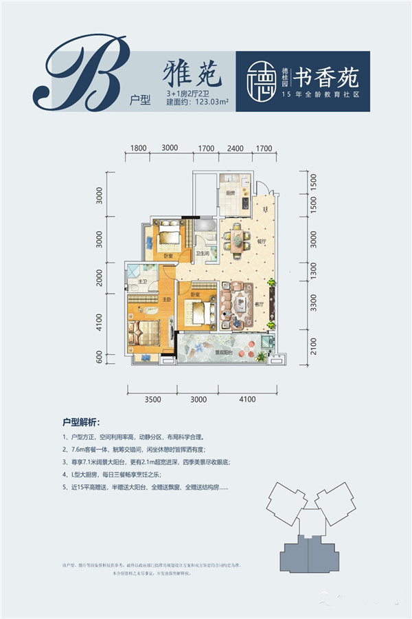 德桂园书香苑5500元/平方米。项目为高层板塔结合。主力户型为123.03平-137.5平3居。容积率2.5。娄底振翩小学正对面(娄底一中斜对面)。