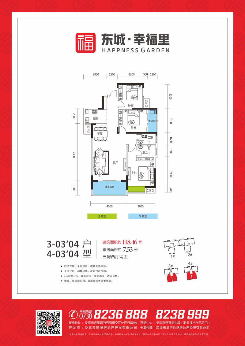 在售 户型方正 全明格局 主卧带卫 干湿分离 观景飘窗