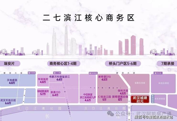 武汉城建·启元项目雄踞汉口滨江国际商务区二七核心区六期,地处长江主轴沿线桥头堡位置,坐拥传统核心区浓厚的居住氛围与历史底蕴。