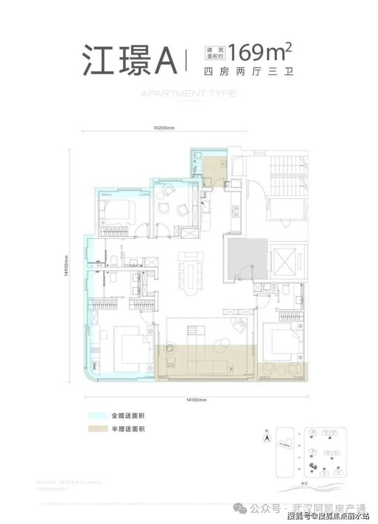 项目一期包含7栋住宅,北区1-2栋,南区3-7栋,其中5-6-7栋(主推169-189㎡)位于项目最南端,可以一线无遮挡看江。