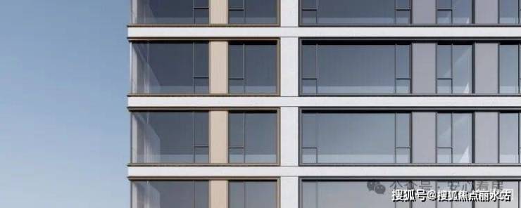 比肩一线城市豪宅的公建化立面形象:类公建现代都市颜大面积玻璃幕,搭配金属铝板和真石漆涂料,使得整体建筑大气简洁与线条流畅,建筑现代都市感气息浓郁。