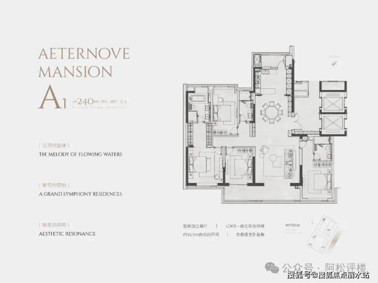 户型设计上,该户型四房设计,甚至有改造为五房的条件(南向主卧和客厅之间可以隔出一间房),做了四个卫生间,三个卧室均带独立卫生间,南向和东南向卧室都可以做主卧;面积优化方面,独立电梯前室,客餐厅270°拐角大阳台,部分房间带飘窗,相较于240平房源优化面积更多。