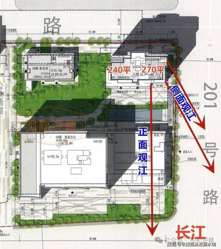 从规划看,这3栋住宅高层高区都有局部无遮挡的看江视野,在目前的二七滨江还是很稀缺的,2号楼在两栋商办之间,高区有不错的看江视野,低区也有一定看江视野。