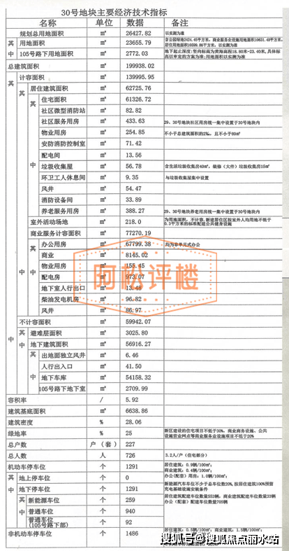 30号地块占地面积约2.6万㎡,总建面约20万㎡,住宅建面约6.1万㎡,容积率约5.92,共227套房源,车位配比约1:2.4。