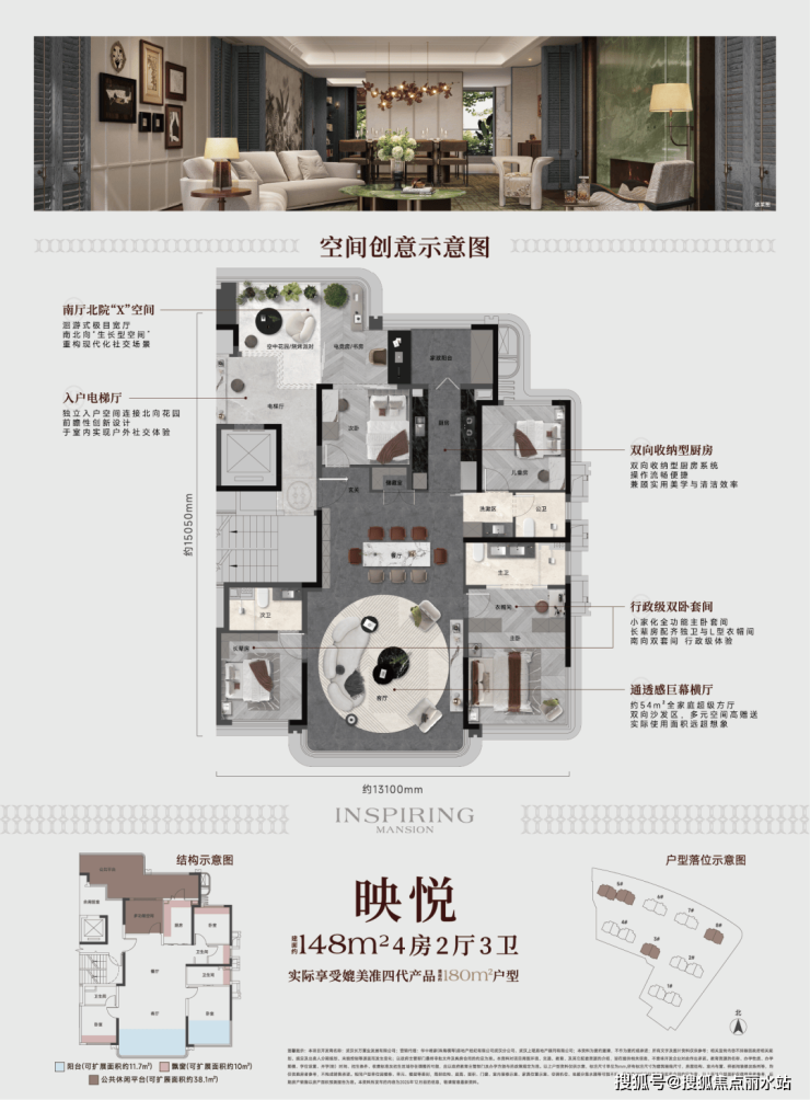 又比如,高级烟火气的街区、高奢酒店环岛式落客区、泗水归堂的中庭水院、层层递进的院落、以及风雨连廊全楼栋覆盖,处处皆是尊贵的身份标识和归家仪式