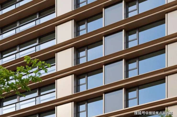 铝板拼接大块玻璃幕墙,配以约0.6高窗墙比,精选德国旭格系统窗,通透、时尚。