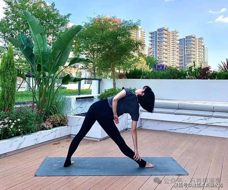 瑜伽垫铺在覆土庭院