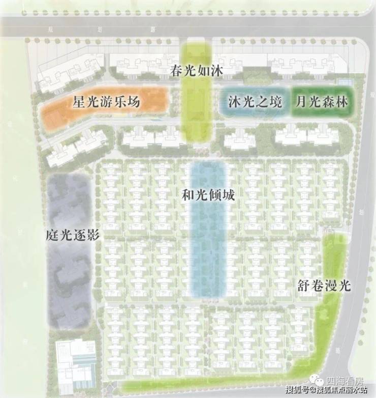 项目打造邻里花园区、儿童游乐区、全龄运动区、长者休闲区、环形跑道区、星空泳池区、景观会客厅七大主题功能空间,为儿童、少年、青年、老年不同人群提供专属活动区域。