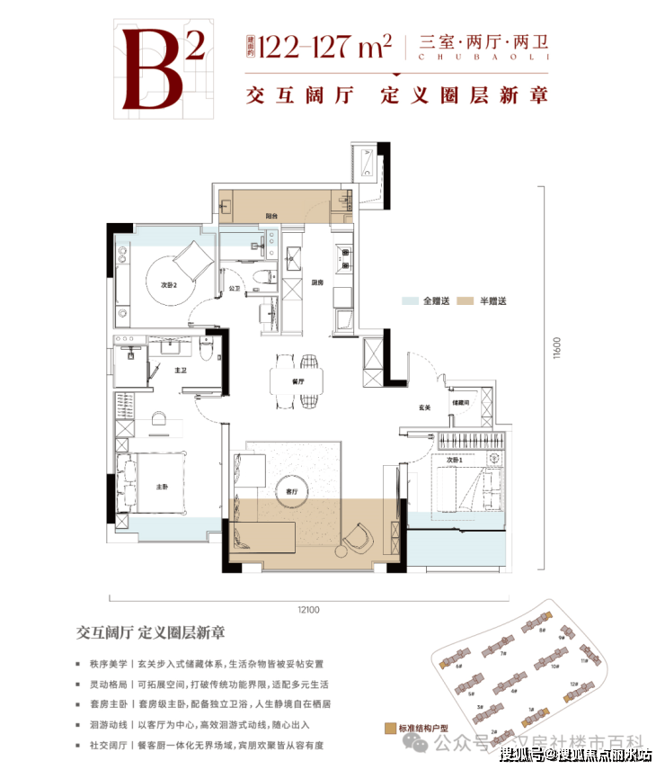 B户型丨122-127m² 三房两厅两卫