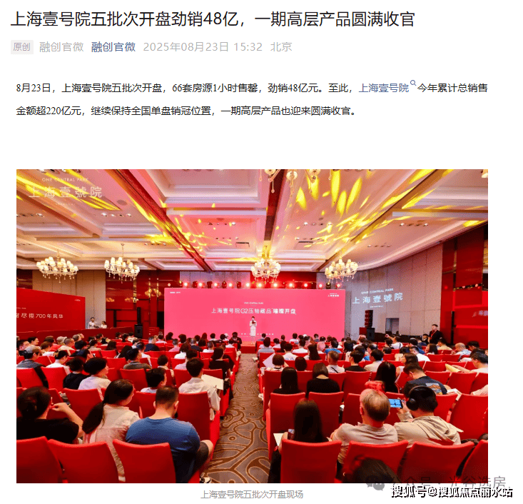 说起融创,最近热度最高的应该就是上海壹号院项目了,8月23日,66套房源1小时售罄,劲销48亿元!(信息来源:融创官微)