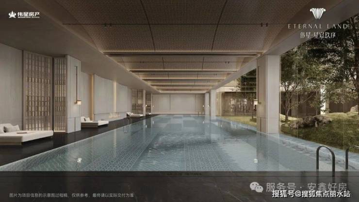 下沉式庭院会所+架空层泛会所,行政酒廊、恒温泳池、健身房一应俱全,所见即所得。