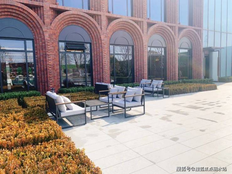 有别于其他或现代、或科技感的示范区, 常春藤示范区创新融合红砖元素,极具复古典雅的气质,远远看上去特色十足、抓人眼球。