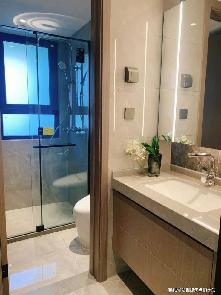 客卫纯干湿分离,在洗手台和厕所间一道门的距离,避免家中访客多时,有人要上厕所、有人要洗手的尴尬, 充分从人居体验出发,洞悉业主的一切需求。
