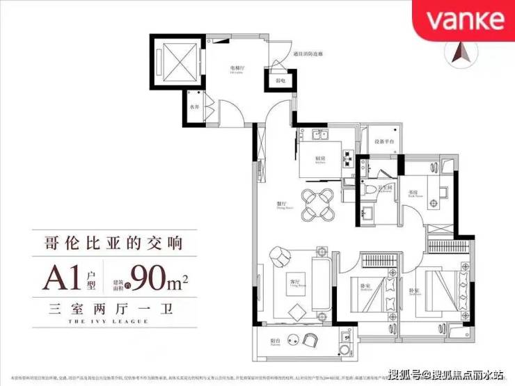 建面约90㎡的户型,三室两厅一卫设计,户型方正, 客餐厅一体化联通阳台,餐厅的窗户设计使得 整体格局南北通透,在舒适度上更得人心。