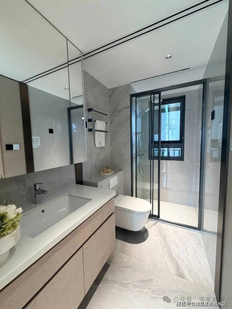 卫生间采用三段式干湿分离设计,卫生间与洗漱区同时使用互不干扰。