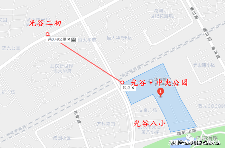 光谷·中央公园位于荷叶山路与光谷一路交汇处以东,荷叶山以北,也在融创桃花源地块北面,在楼市中属于光谷核心,行政划分属于东湖高新区,环线属于三环内。售楼处电话400-8787-098接通后输入5678【营销中心】