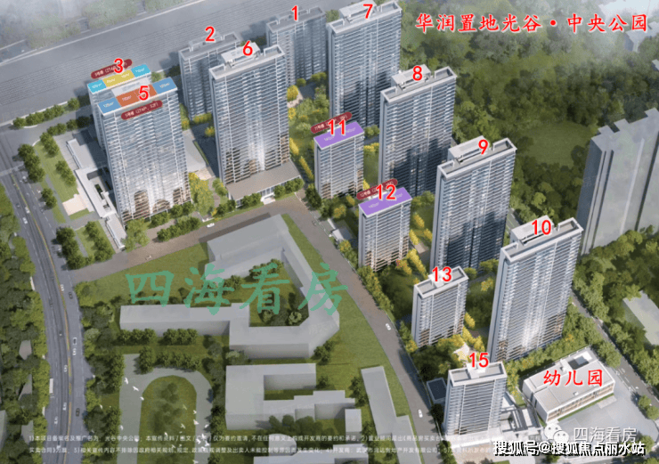 光谷·中央公园占地面积约5.7万方,总建面约18.6万方,整体容积率约2.4,总户数约1116户,机动车停车位约1372辆,车位配比约1:1.23,包含13栋住宅和1所幼儿园。