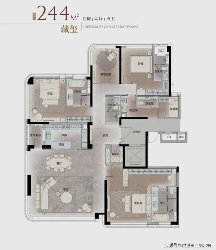 主力户型采用了Ultra版环幕客厅+无界转角270度全景舱的设计,面向江景与中庭处,带来了极佳的观景体验。
