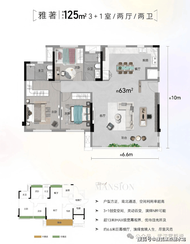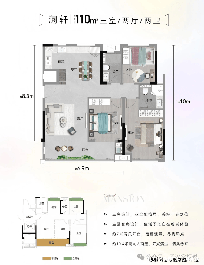 户型方面也较为优异,约3米层高,一梯两户设计,主力户型如下: