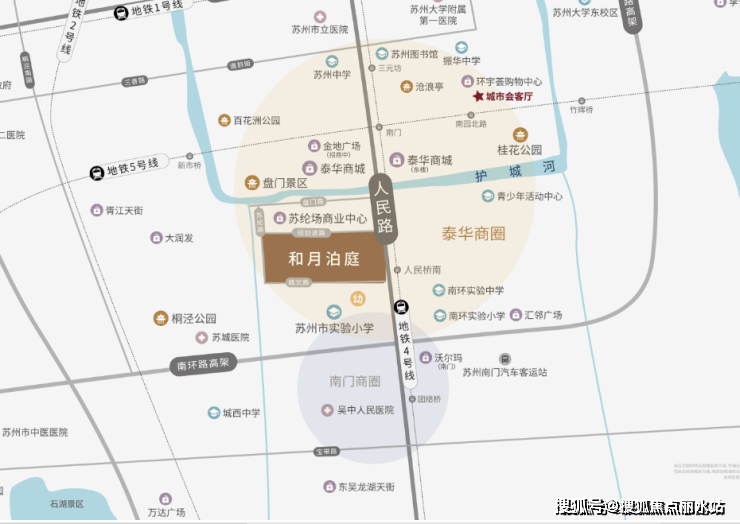 从区位来看,和月泊庭位于姑苏区吴门桥街道人民路西,端文路北。