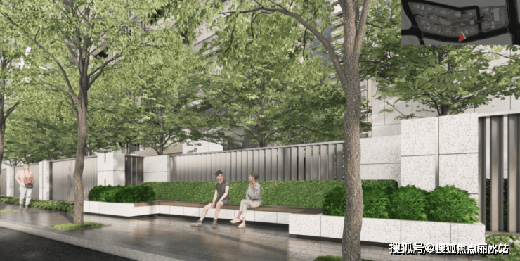 不仅如此,为保持社区内外景观连贯性, 和月泊庭连红线外的市政景观,也一并考虑在内, 无缝连接古城绿化带空间,使景观得到延伸,打造了互动现代感街区。