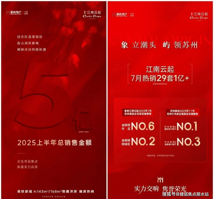 克而瑞权威数据显示,2025年1 - 7月象屿地产在苏州大市房企商品住宅销售中,权益销售面积排名第一。其旗下江南云起项目表现尤为亮眼,我们从案场了解到,江南云起项目2025上半年总销售金额超5亿,最近的7月单月就热销29套、揽金1亿+。不仅如此,在2025年7月苏州商品住宅项目销售榜中,江南云起市区金额榜排第6、相城区金额榜排第2。