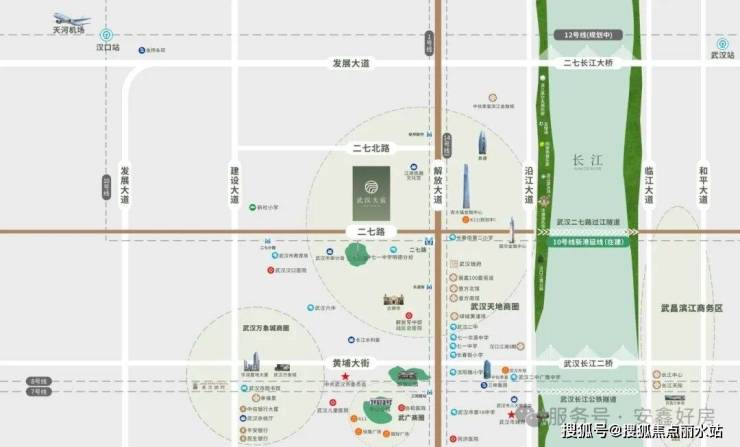 自驾:项目周边有沿江大道、解放大道、建设大道,贯穿汉口南北;武汉长江二桥、二七长江大桥,无缝衔接武汉内环、二环;武汉长江公铁隧道、武汉二七路过江隧道(预计2025年投入使用),快速直达武昌。