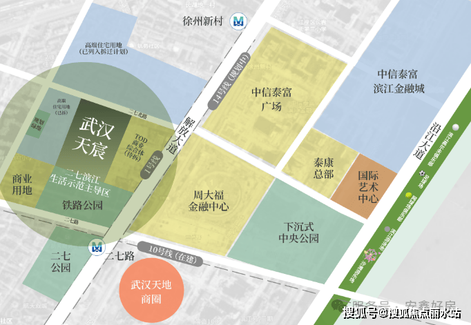 项目位于江岸区二七滨江板块,距离二环线直线距离600多米,当之无愧的汉口核心区位。