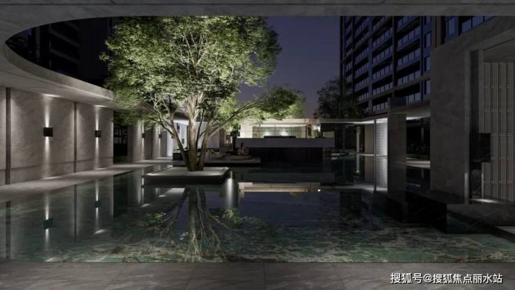 在临街主动退让,精心设计的水系涌泉和进口树种园林,将社区入口隐藏在了一片葱郁清幽之中,完成“入世”“出世”的过渡。