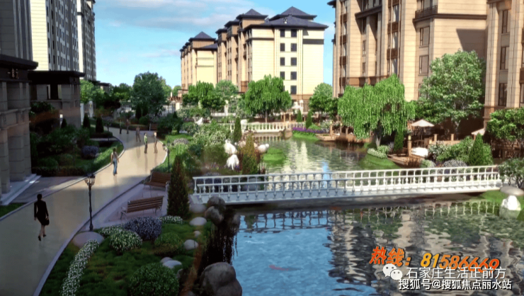 多层住宅景观设计采用至尊的水岸生活 ,静园的设计理念。铂宫后海北侧住宅临近滹沱河,考虑把水文引进整个小区环境中来,分南北两个水系,设计遵循“铂宫后海”的主题设计理念,意在体验自然湖水之美。出小区是河,回小区是湖,完全像住在了景区里。