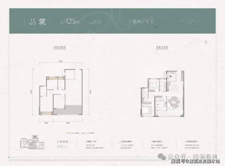 户型面积:建面约125-172㎡三房四房产品