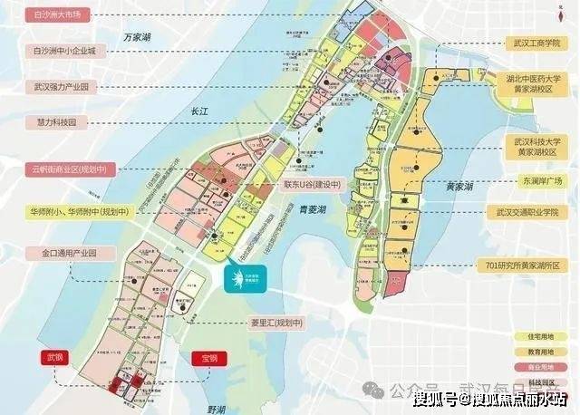 三环线/四环线横跨长江两片,速达武汉三镇;武金堤路/上汽通用大道/白沙洲大道纵贯南北,直抵武昌中芯;地铁5号线已经建好通车、12号线(在建中)、17号线(规划中)、32号线(规划中)四轨交织,提速区减发展。