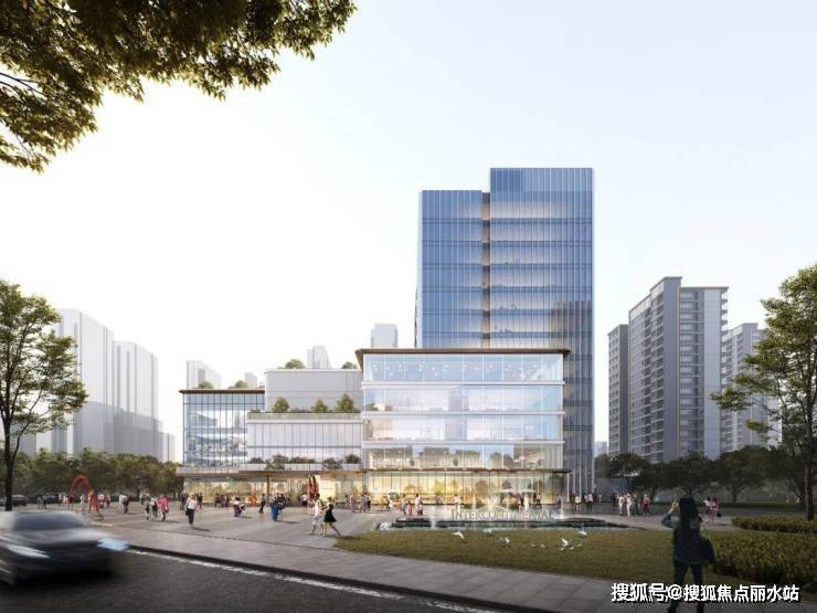 公建立面:以多元化的材质、尺度、错落进退,形成小体量的有机形态,在消解了矩形大体块压抑感的同时,也形成立面整体效果的均衡与统一,构建一个向上生长的绿色商业社区。