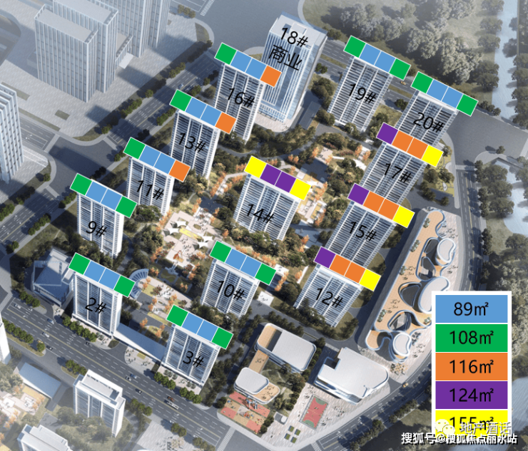 89㎡(3房1卫)322套(32%);108㎡(3房1卫)255套(25%);116㎡(3房2卫)21%;124㎡(3房2卫)11%;155㎡(3房2卫)11%。