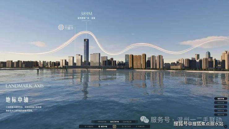 约389米瓯江之眼旁,与江滨路地标群共立,撑起温州天际线,站在温州的舞台聚光灯下,立于时代大潮之巅。