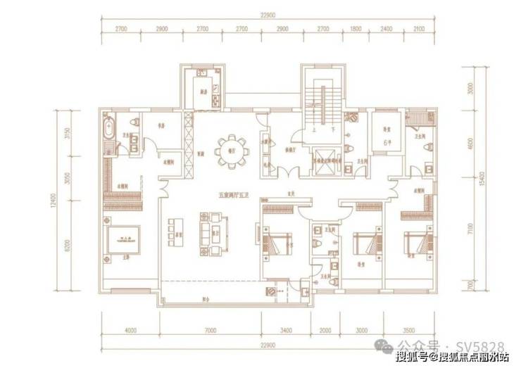 5. 318㎡五室两厅五卫。平墅户型