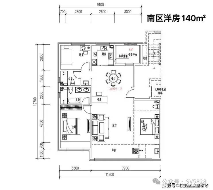 2. 140 ㎡ 三室两厅三卫