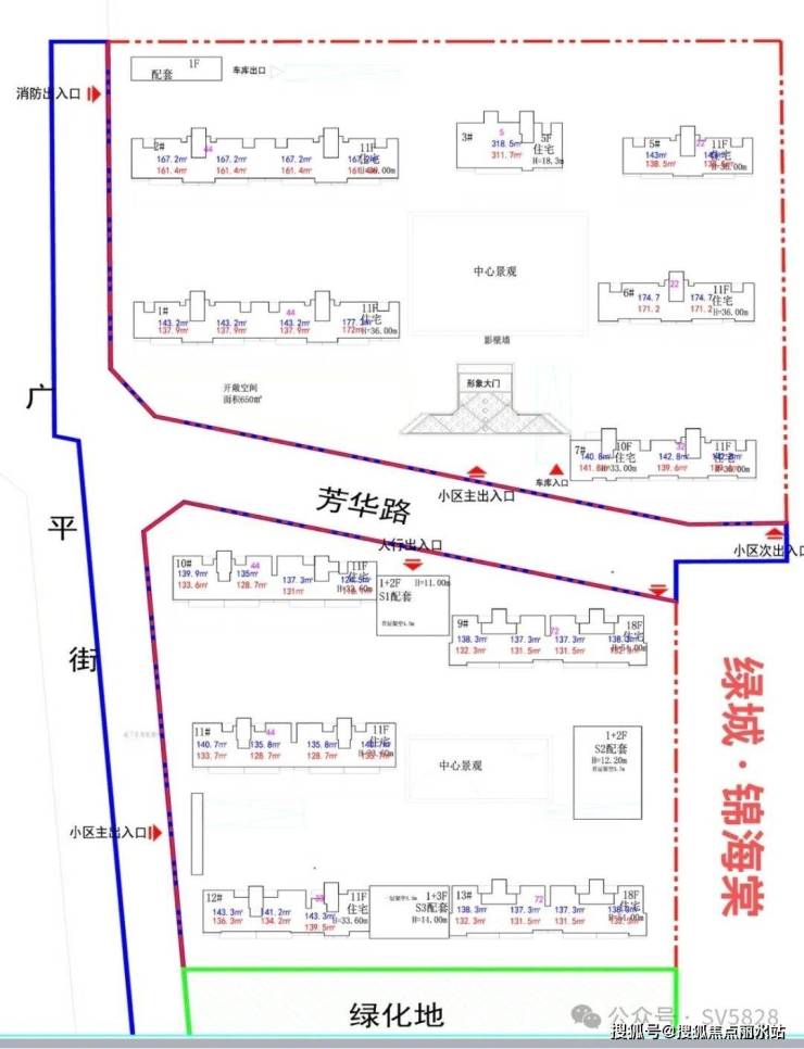 项目共规划建面约120/138/142/167/174/318平米多面积段洋房产品