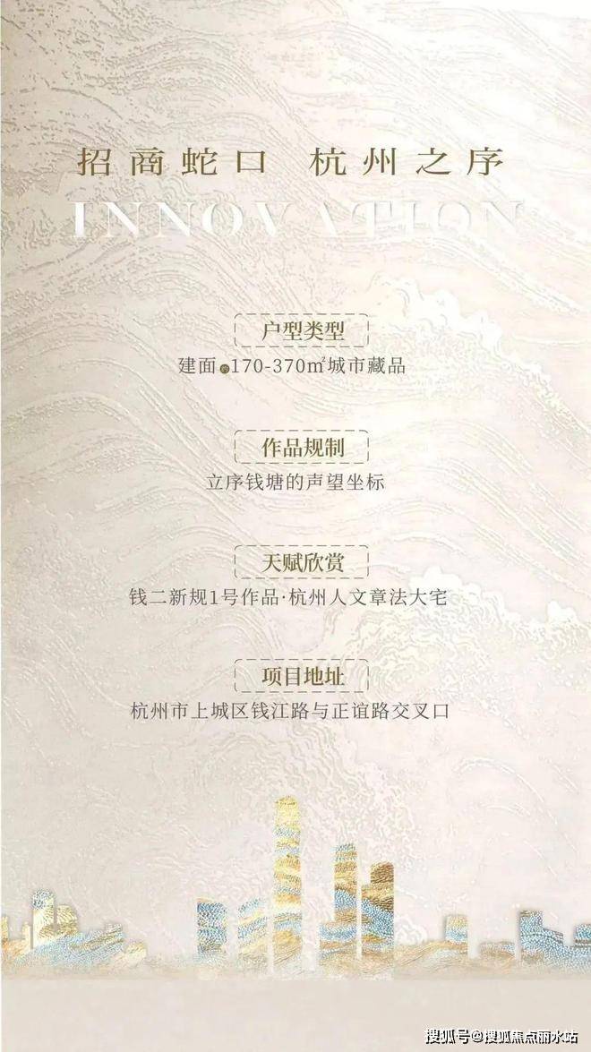 屹立时代潮头的杭序府,是招商“敢为时代先“精神的体现。在限价放开+钱二新规的双重变革中,招商蛇口洞察杭州高端人居生活趋势,聚焦城市战略发展极——钱江新城二期,以“开江立序”为作品抱负,用定制的手法,将杭州的人文演绎为作品的精髓,邀城市共鉴“一个时代的开启”。